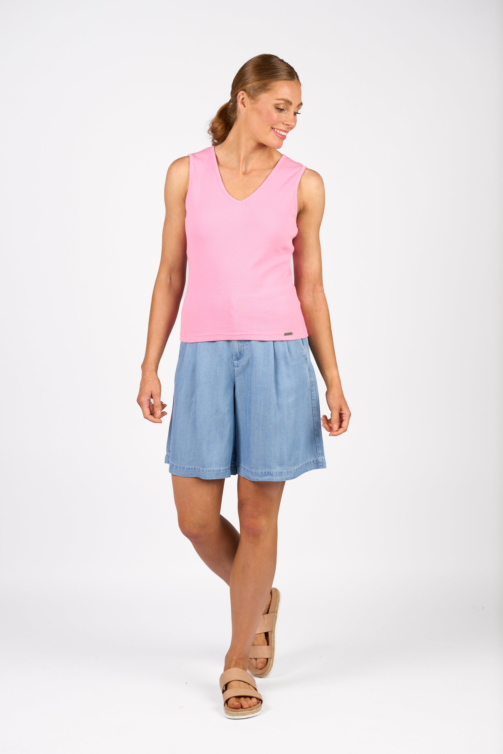 The Vista Tank is a simple, slim-fitting style made from midweight cotton-elastane rib. With a flattering V-neckline at both the front and back, it works effortlessly as a layering piece or a standout on its own.