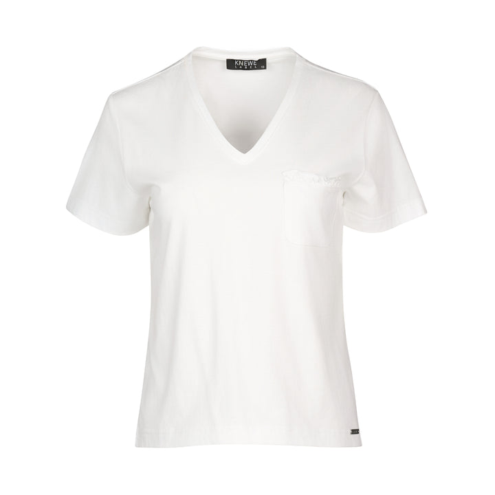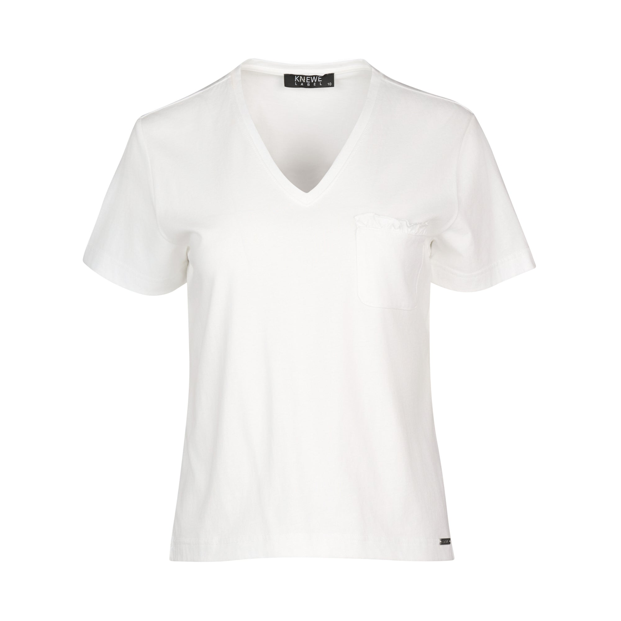 The Mila Tee updates a classic short sleeve V-neck with a delicate frill-trimmed patch pocket. Made from soft, lightweight cotton jersey, it offers a relaxed fit for effortless comfort and everyday style.