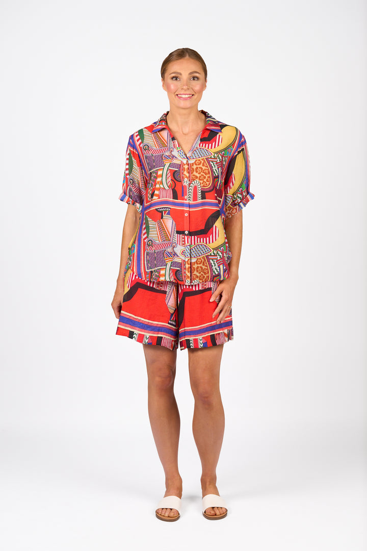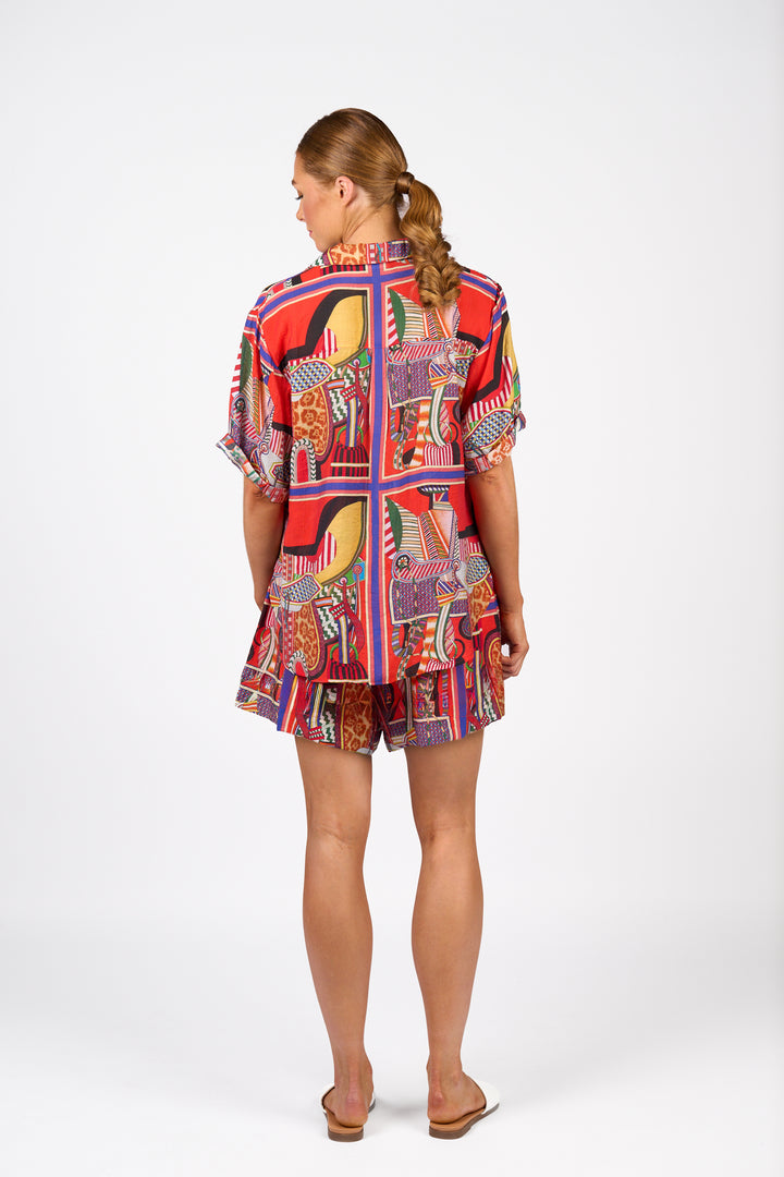 The Infinity Shirt in our Cleopatra print is made from a lightweight cotton fabric with a gentle drape. It features a soft shirt collar, button-up front, and short sleeves with turned-up cuffs. Designed with a curved hem and relaxed fit, it brings an effortless feel to warm weather dressing.