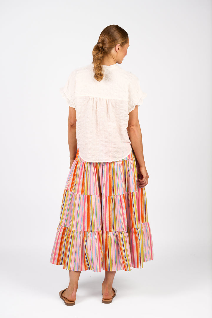 The Addison Top is a lightweight summer favourite with a relaxed fit and feminine frill cuffs. Its V-neck and shirred detailing add subtle charm, making it perfect to wear on its own for effortless style.