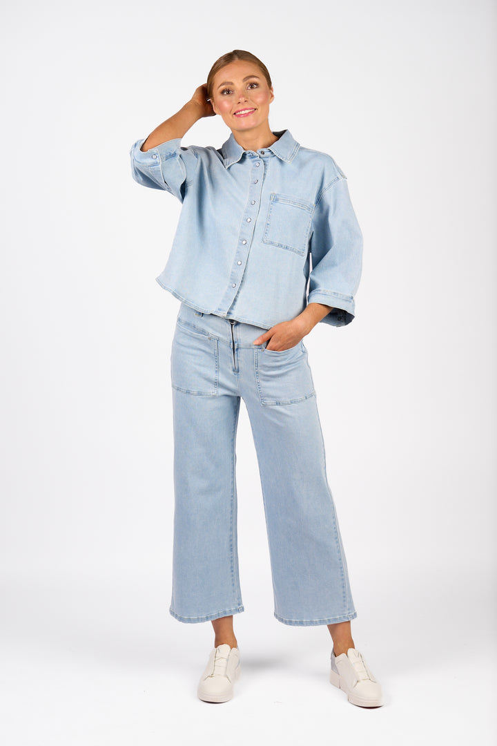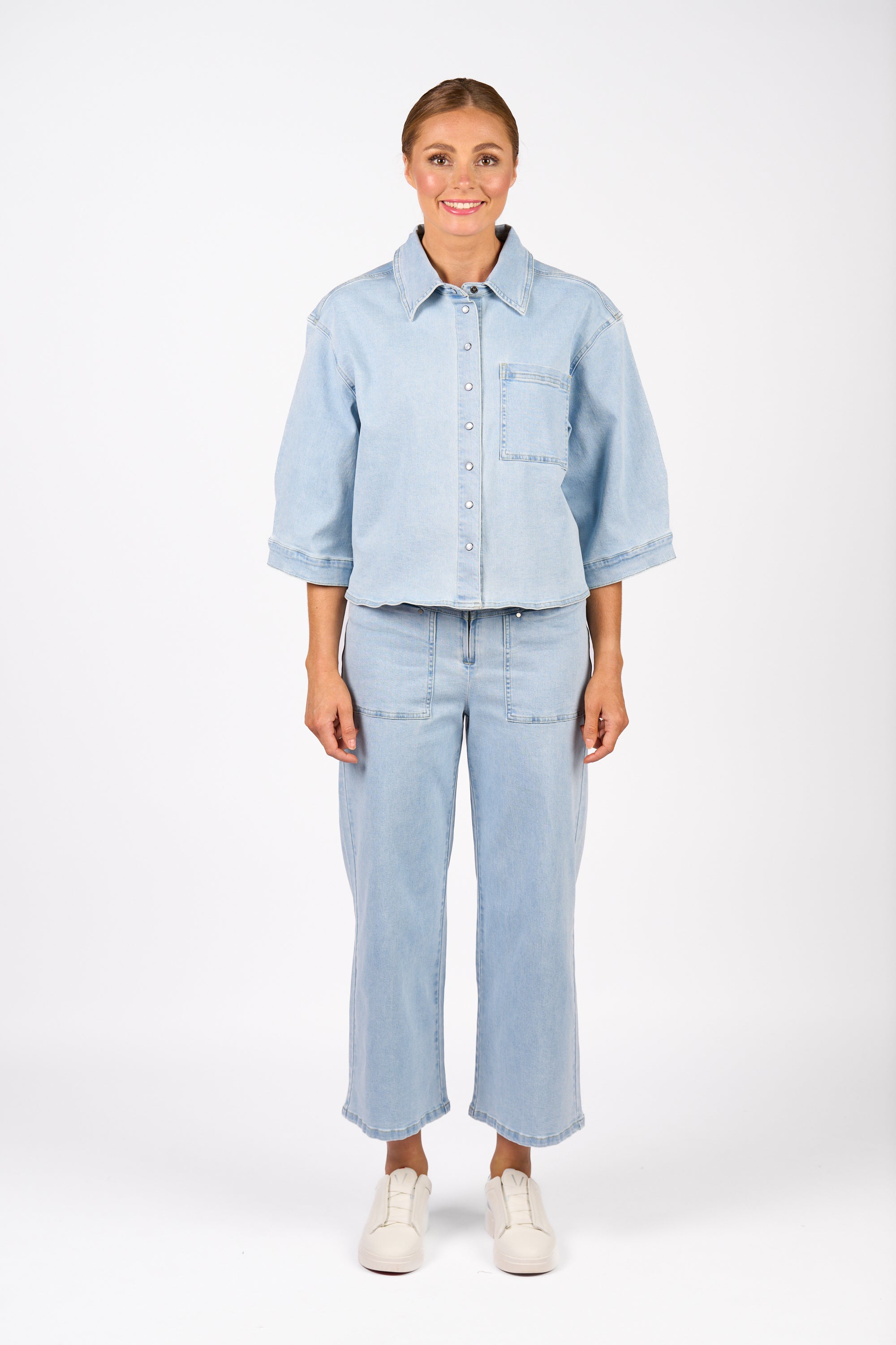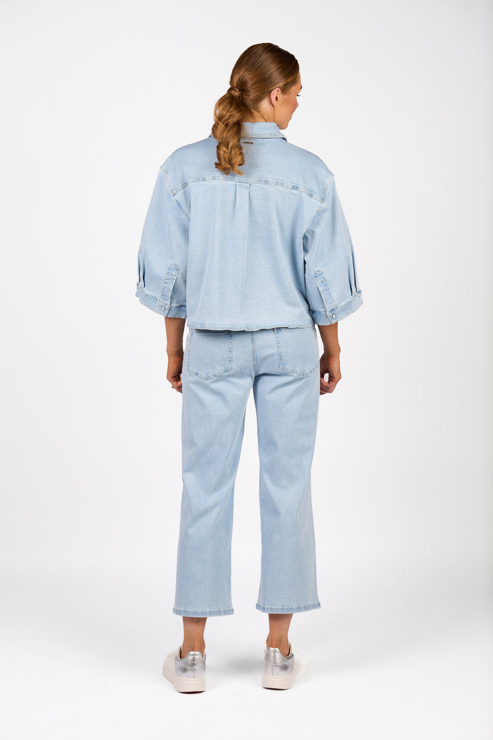 The Coupe Shacket blends the ease of a shirt with the structure of a jacket. Made from lightweight denim, it features wide ¾ sleeves, a relaxed fit, and subtle popper dome fastenings for a clean finish. An ideal layer when you want something light but structured.