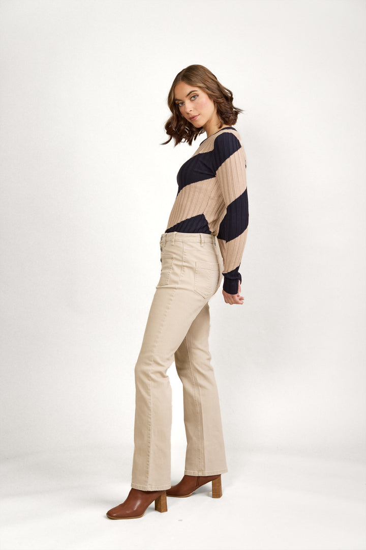 • Leather 'KNEWE' brand patch on wearers back right-hand side waistband